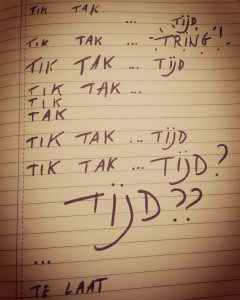 Pas na enkele jaren van tijd vertrappelen, koesteren, tegenhouden, tellen, ondergaan, kan ik zeggen dat ik vriendschap sloot met de Tijd. Maar dat kon enkel en alleen doordat ik zoveel mogelijk elke stap in de tijd bewust neem. Soms snel, soms traag, soms achteruit kijkend, soms vooruit reikend, maar wel volledig bewust in het hier en nu.